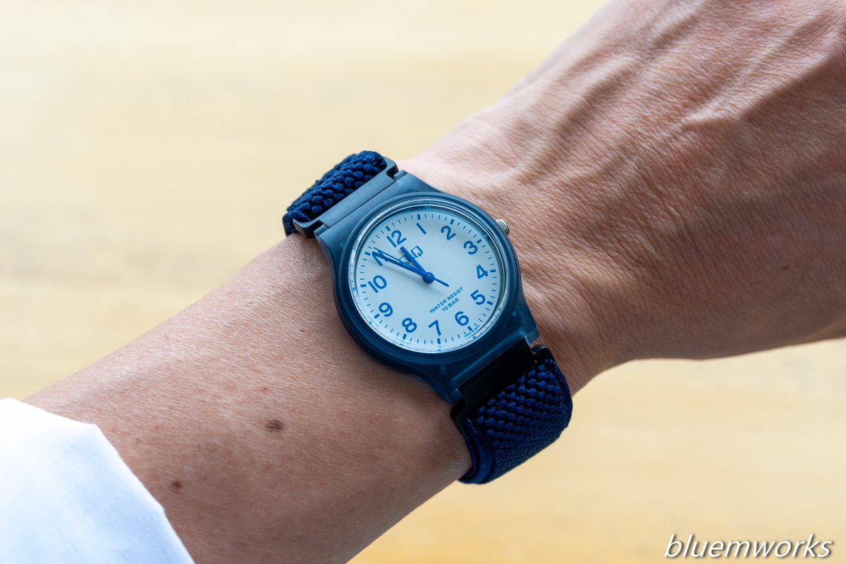 先日購入した「シチズンQ&Q V06A-519VK」早速ベルトをナイロン製に交換しました。