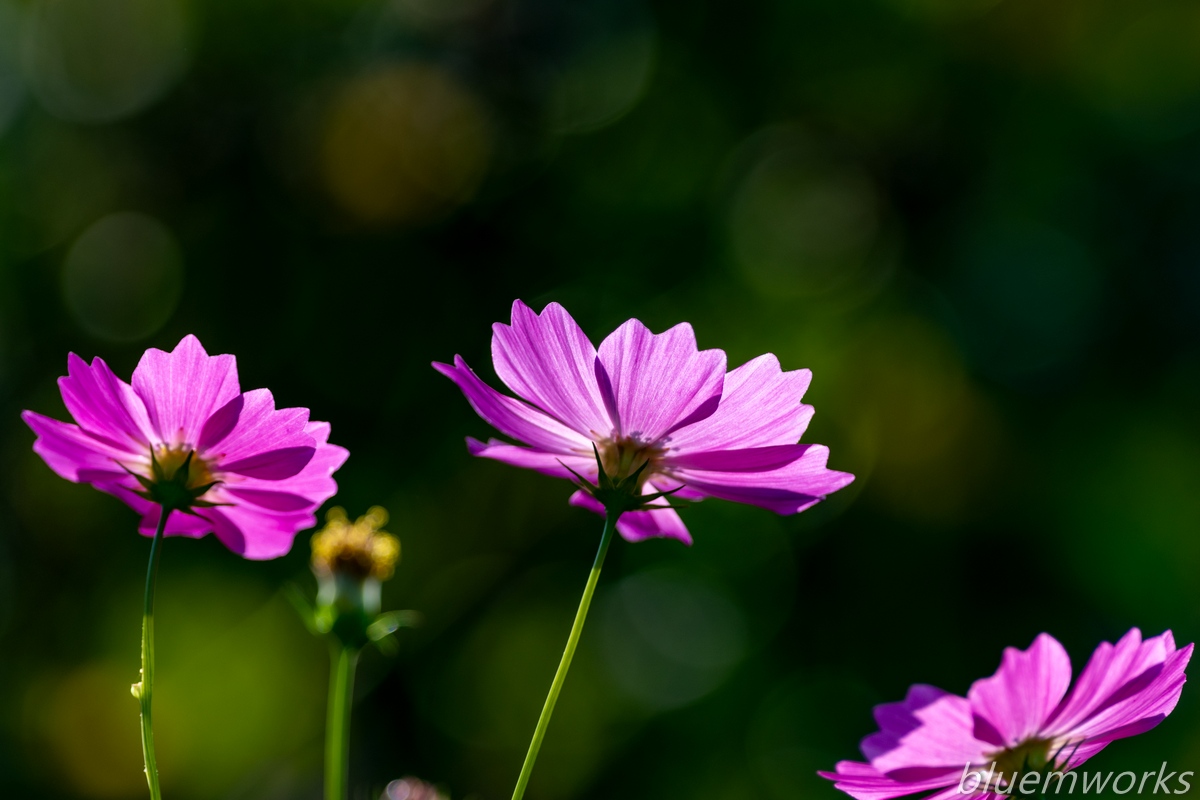 K-5Ⅱs/ DA★300㎜f4ED [F4 1/1000 ISO160 -1.0EV] コスモスが好きです。 その花姿、マクロで寄っても良いし、こうして逆光の透過光でも美しいし。そして漢字で書く「秋桜」という文字も好きです。 夜寝る前に万年筆で文字を書いてから寝るのですが、山口百恵さんの秋桜の詩を書くことが多いです。 秋の日に、寂しくも楽しかった頃の思い出を重ねる詩が良いんですよね。 秋桜 bluem 2025/10/24 花 No Comments