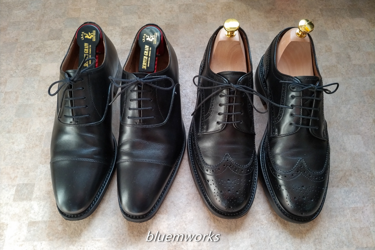 AQUOS sense6s お手入れした黒革靴です。 左がスコッチグレインNL4116BL、右がREGAL15BRTH。どちらも超がつくほどお気に入りの靴です。 と言っても今年は履く回数が少なくて、仕事休みの日に足に慣らすための散歩に履いて行く方が多かったです。 大事に愛でるのも良いですが、やはり使ってあげてこそだと思うので、意識して履いていこうと思った次第です。 黒革靴 bluem 2025/11/04 靴 No Comments