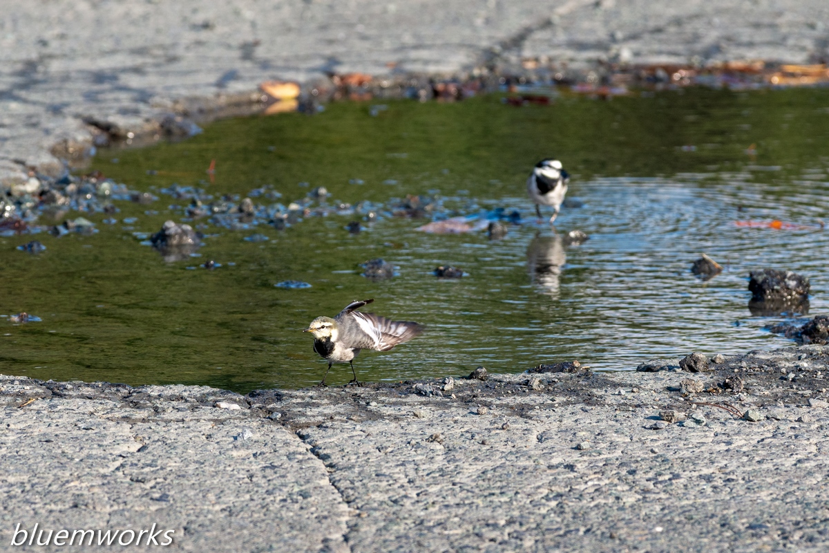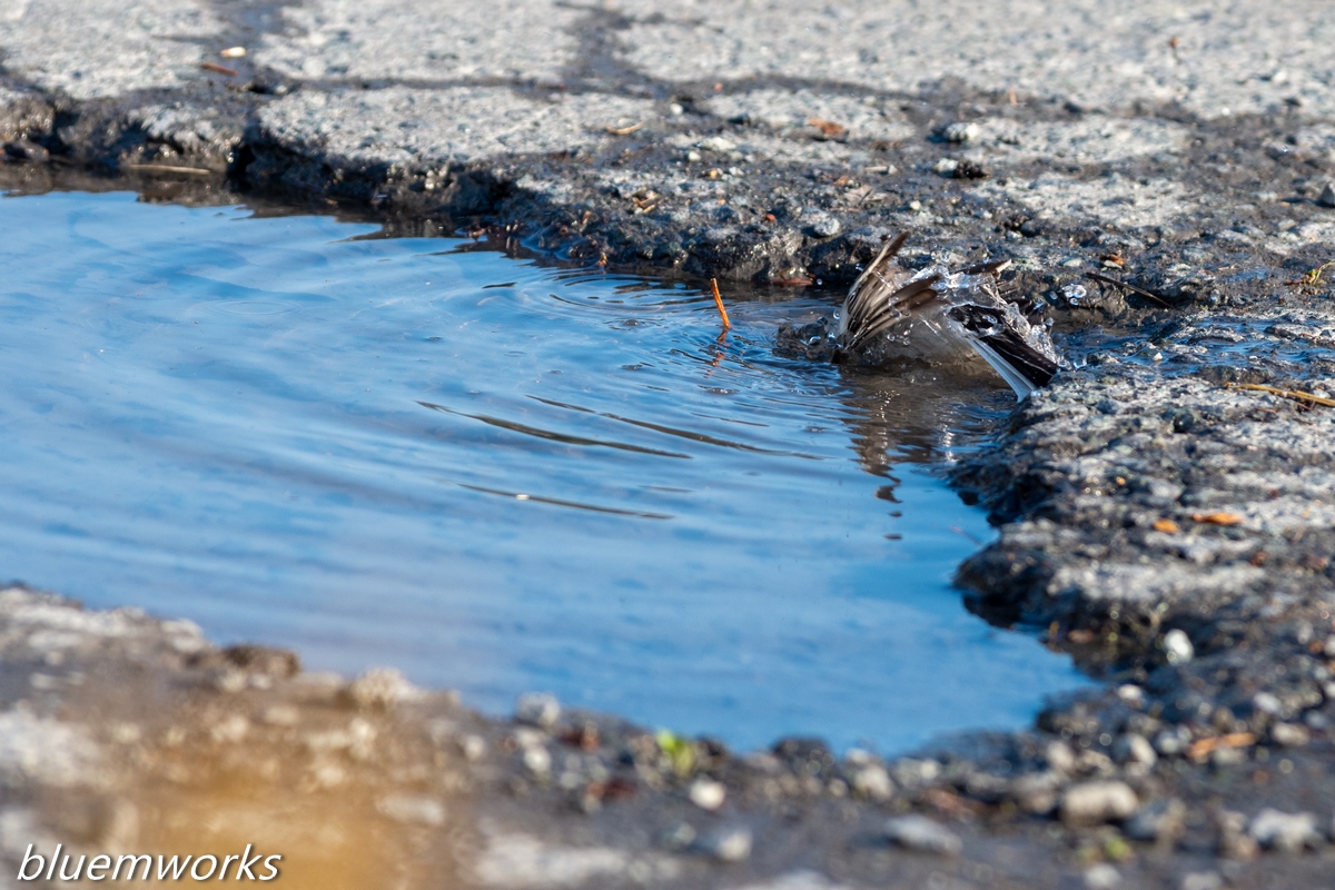 K-5Ⅱs/ DA★300㎜f4ED [F8 1/750 ISO400 ±0EV] いつもの水溜りで、ハクセキレイが水浴びをしていました。 写真は2羽ですが、全部で6羽のハクセキレイが世間の垢を落としていました。 K-5Ⅱs/ DA★300㎜f4ED [F5.6 1/750 ISO280 ±0EV] 一枚目は大浴場で、こちらは手前にあった小浴場。一羽の女子が入浴を楽しんでいます。 K-5Ⅱs/ DA★300㎜f4ED [F5.6 1/750 ISO400 ±0EV] 「あぁ~、良い水だぁ~♪」とでも言ってそうですよね(笑) 天然水風呂 bluem 2025/11/07 野鳥 No Comments