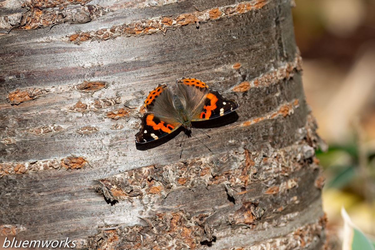 成虫で越冬する蝶の翅裏は樹皮に似せているものが多いですが、このアカタテハとヒメアカタテハは違うんですよね。