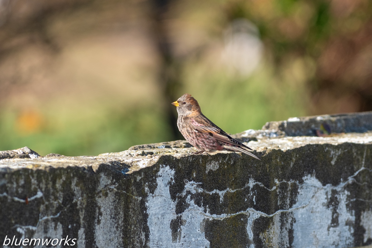 初め見た時に「ベニマシコか?」と思って撮っていたのですが、クチバシが黄色いのと顔付きが柔和なベニマシコとは違っていたり、写真よりも肉眼では色が黒っぽく見えるのですが、シャッターを切っているうちにハギマシコと気付きました。