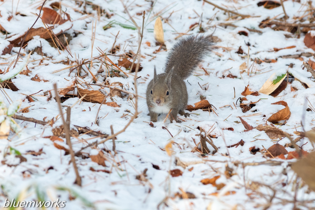元旦早朝、撮影に出掛ける前に「今日は良い写真が撮れる気がする」と何となくの予感めいたものを感じていて、そして林に向かったのですが、めずらしく2匹のリスが一緒に行動していたり、そしてそのうちの一匹がこのように近付いて来てもくれて、2026年の良い幕開けになりました。