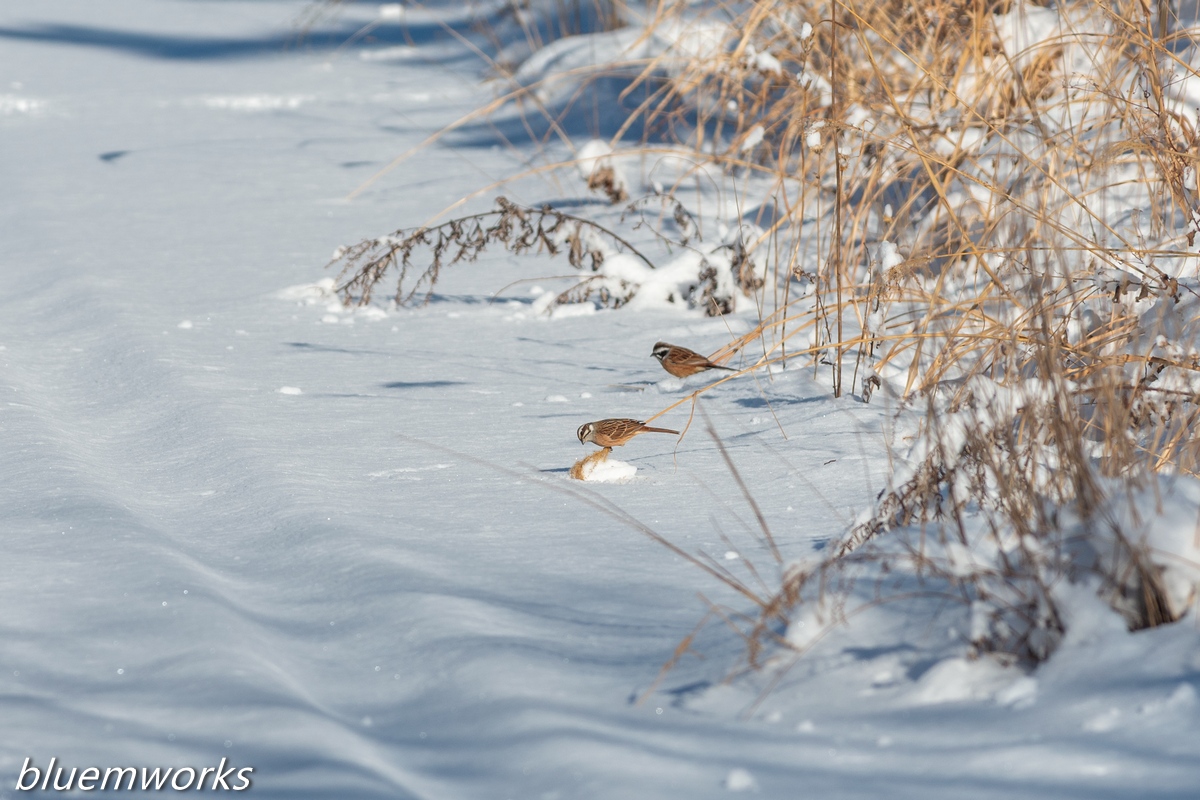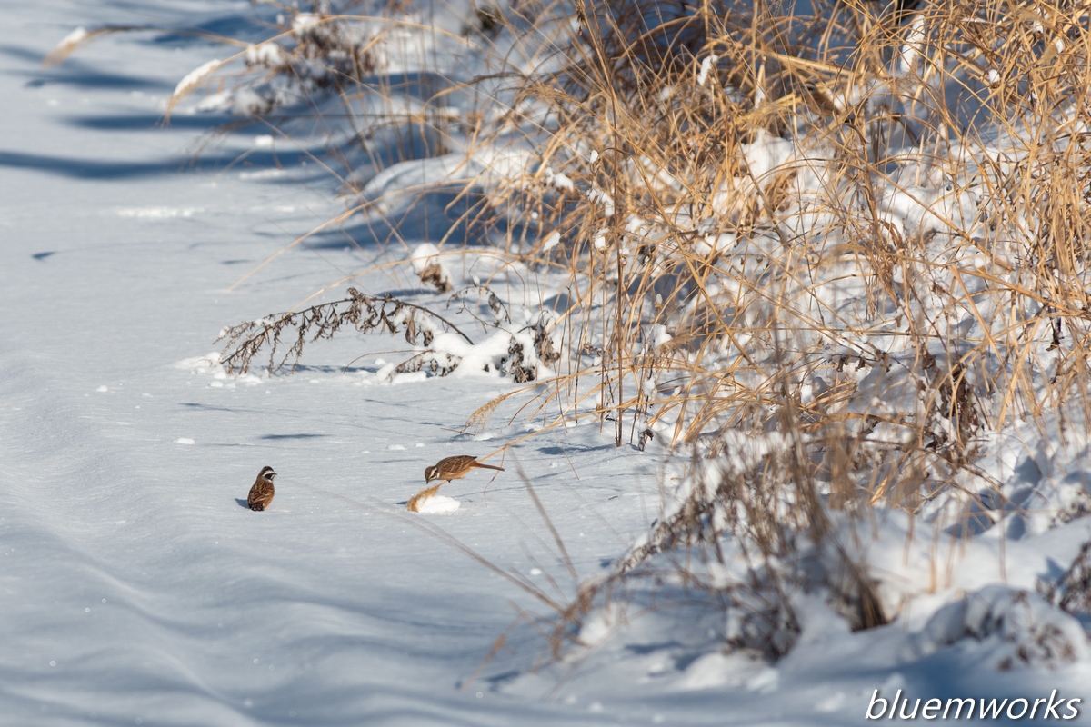 以前、多くのホオジロが越冬して頃は、ホオジロの群にカシラダカが交じって一緒に行動していたんですよね。