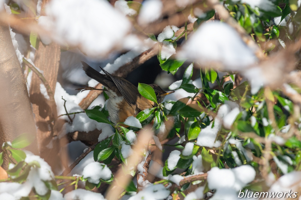 K-5Ⅱs/ DA★300㎜f4ED [F5.6 1/750 ISO200 ±0EV] 隠れているオオアカハラです。 K-5Ⅱs/ DA★300㎜f4ED [F5.6 1/750 ISO200 ±0EV] 脚を上げてストレッチをしているところです(笑) 林脇の道を歩いていたら20mほど先の藪から飛び立って、直ぐにその先の藪に入っていったのでそっと近付いてみたのですが、混み合った葉の中でじっとしていたんです。 こうしてリラックスしているという事は、私が見ているのに気付いていなかったんでしょうね。 警戒心強めの鳥なので、こういうシーンを見れてラッキーでした。オオアカハラ bluem 2026/01/31 野鳥 No Comments