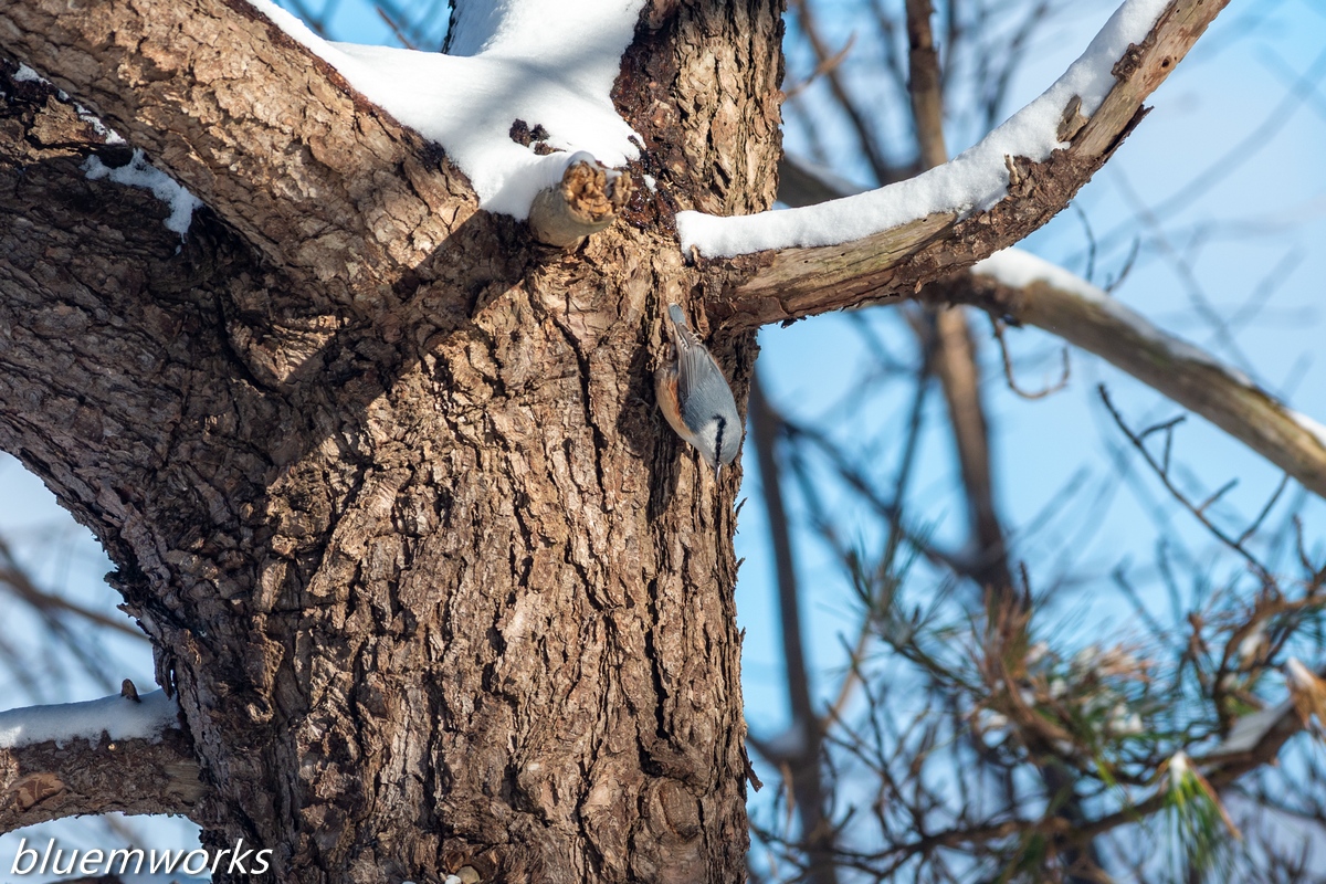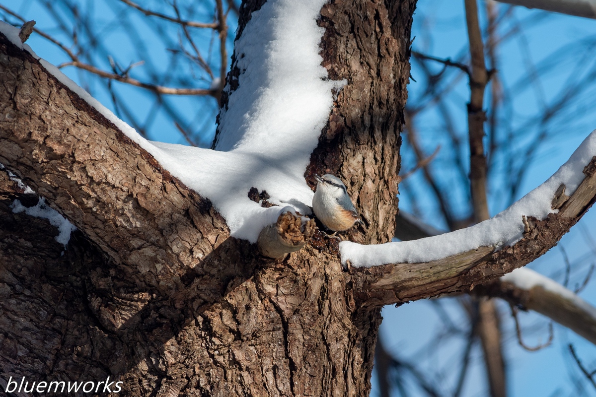 K-5Ⅱs/ DA★300㎜f4ED [F5.6 1/750 ISO200 ±0EV] この頃はゴジュウカラの写真がかなり多くなっていまして、申し訳ないです。 シジュウカラの群と一緒に行動しているので、そこに行けば必ず会える状態で、ついついカメラを向けてしまいます。 K-5Ⅱs/ DA★300㎜f4ED [F5.6 1/750 ISO160 ±0EV] 冬は雪がレフ板代わりになって明るいので、写真撮影には助かります。広葉樹の葉も落ちているので、見通しが効いて探しやすいですし。 何度か書いていますが、撮影散策は四季の中で真冬が一番楽しいんです。ゴジュウカラ bluem 2026/02/03 野鳥 No Comments