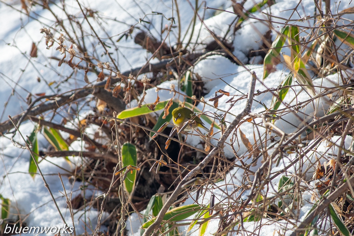 近くに仲間が居て、この子だけ少し離れてこっちに来たのかもしれませんが、何れにしても真冬のメジロに興奮してしまいました。