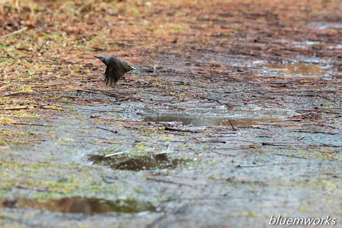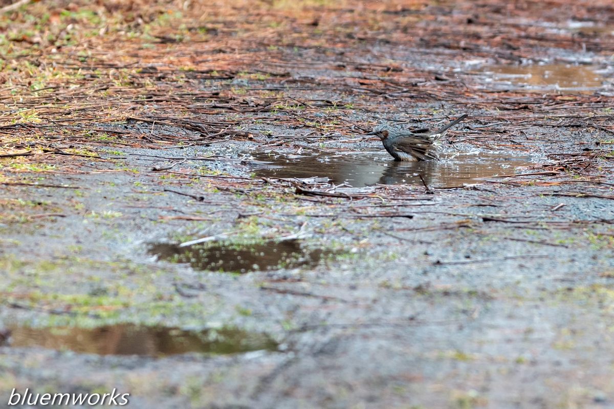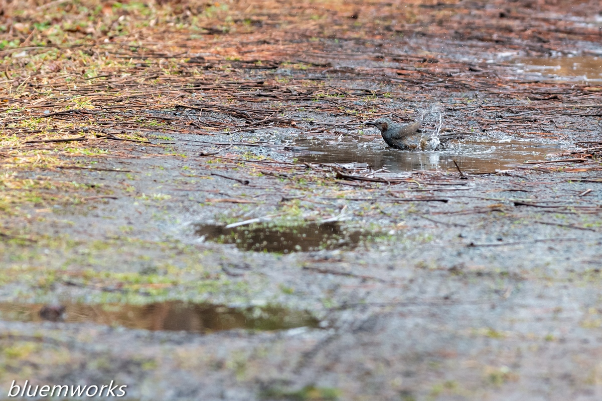 雪解け水でヒヨドリが水浴びをしていました。