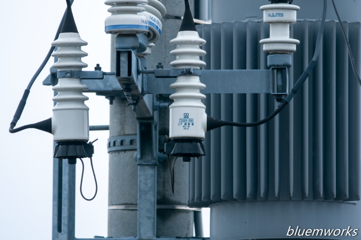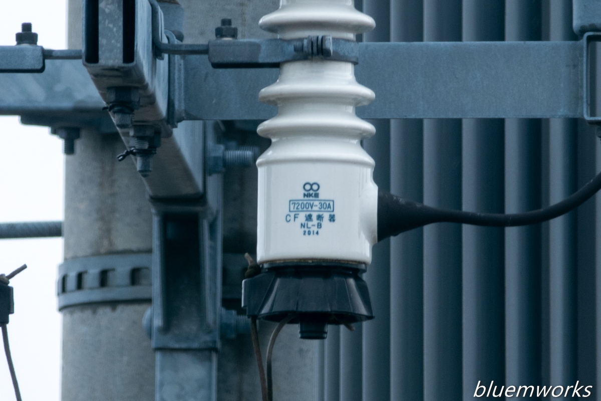 生憎の小雨でしたが撮影散策にも出れないので、自宅2階窓からいつもの電柱トランスの碍子部分でピントチェックです。