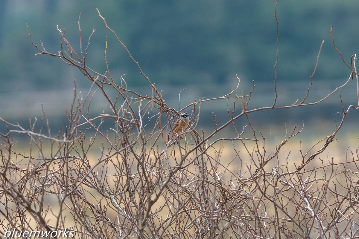 ちょっと距離があってしかも枝被りでしたが、近所の林にホオジロがまだ居ました。