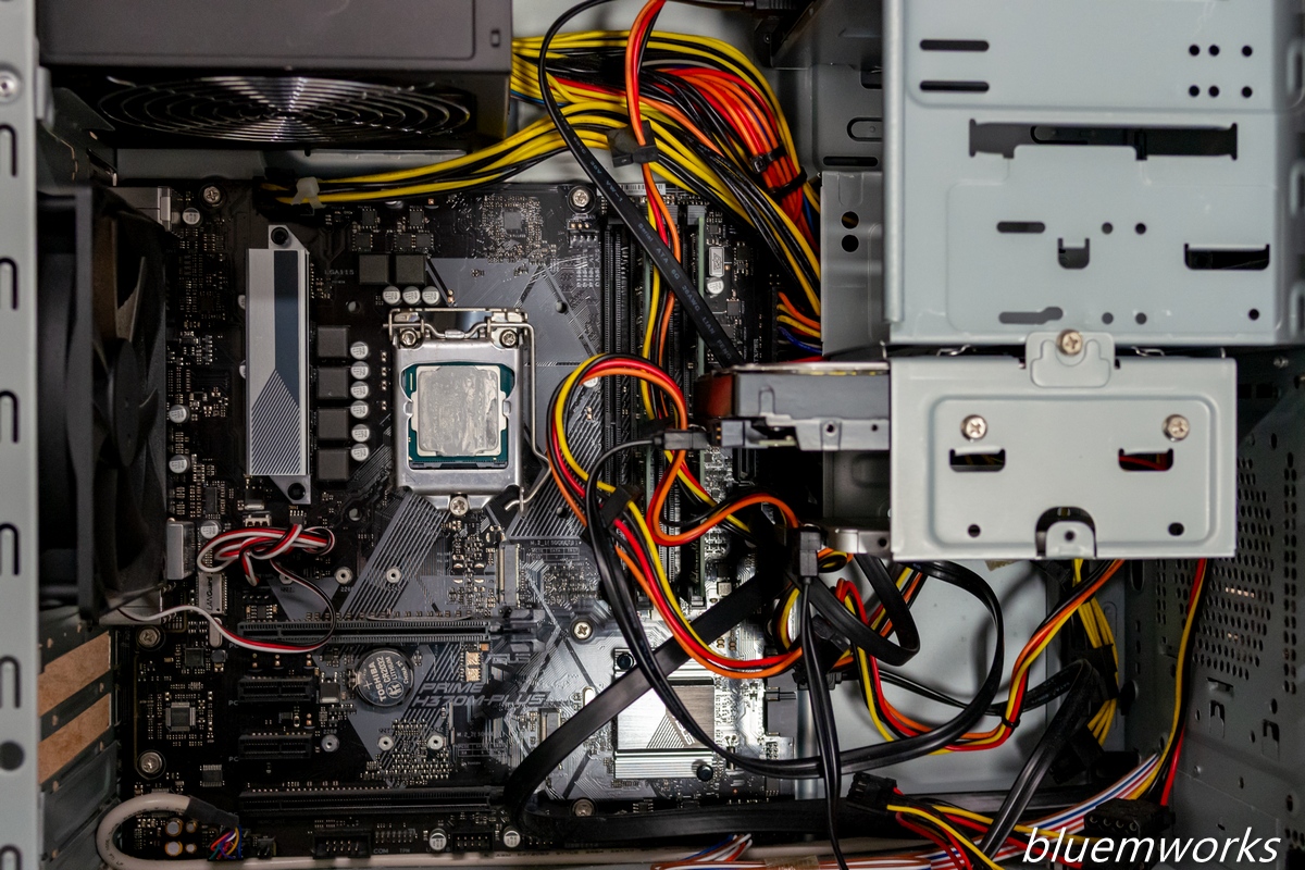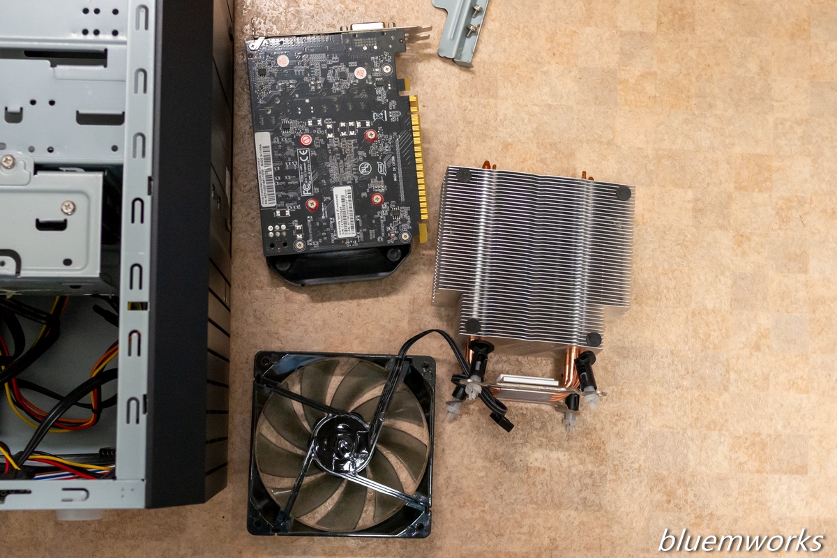 自宅PCはヒートシンクを外すために先ずはグラボ、次にヒートシンクファンを外さないとなりません。同じドスパラのPCでも会社のはヒートシンクを直接外せるので、マザーボード次第で面倒になるものだなと勉強させられます。