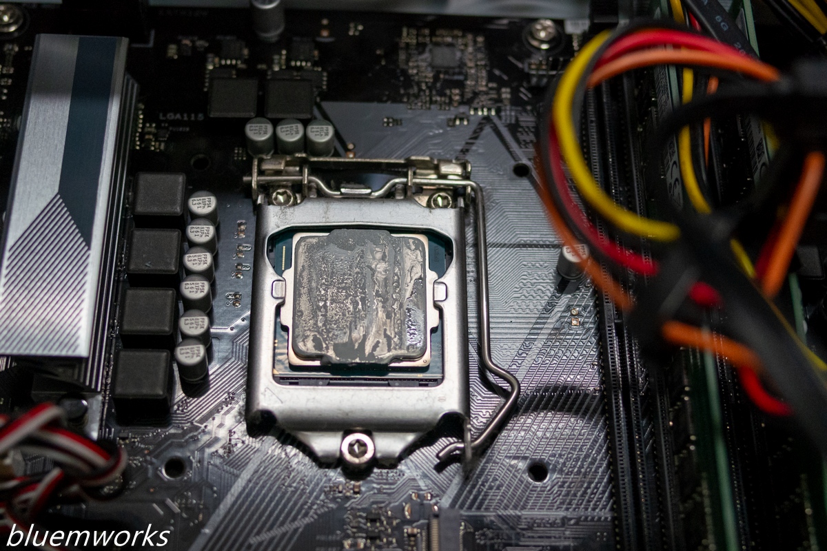 写真はヒートシンクを外してCPUとご対面したところです。