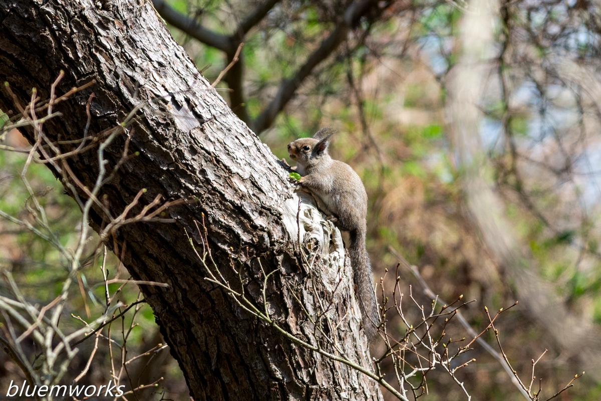 地上から駆け上がってきたリス。